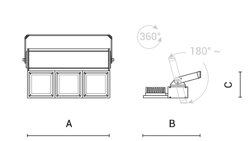 • Applicazioni: NADIR è adatto sia per illuminazione esterna che interna; è ideale per illuminare impianti sportivi, hall di aeroporti, ambienti di grandi dimensioni e per l’illuminazione architetturale e di spazi pubblici