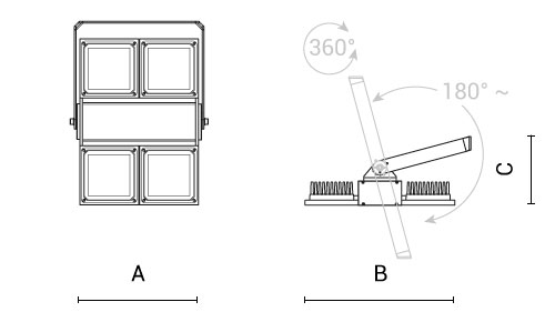 asimmetrica Imax=40° | 290W | 28200lm | 4000K | 80 | ON/OFF | 398mm | 557mm | 255mm |