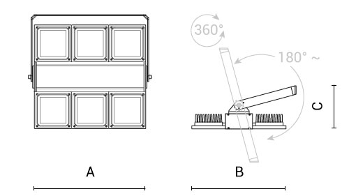 • Applicazioni: NADIR è adatto sia per illuminazione esterna che interna; è ideale per illuminare impianti sportivi, hall di aeroporti, ambienti di grandi dimensioni e per l’illuminazione architetturale e di spazi pubblici