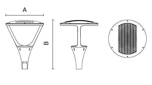 • Versioni: può essere installato a parete o direttamente sui testa palo, oppure montato con attacco palo monoposto o biposto. Disponibile con diverse ottiche, potenze e temperature colore per soddisfare al meglio le esigenze del progetto illuminotecnico