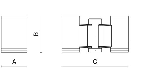 Codice | Ottica | Watt | Lumen | CCT | CRI | Controllo | A | B | C | |