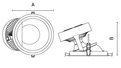 Codice | Ottica | Watt | Lumen | CCT | CRI | Controllo | A | B | C | |