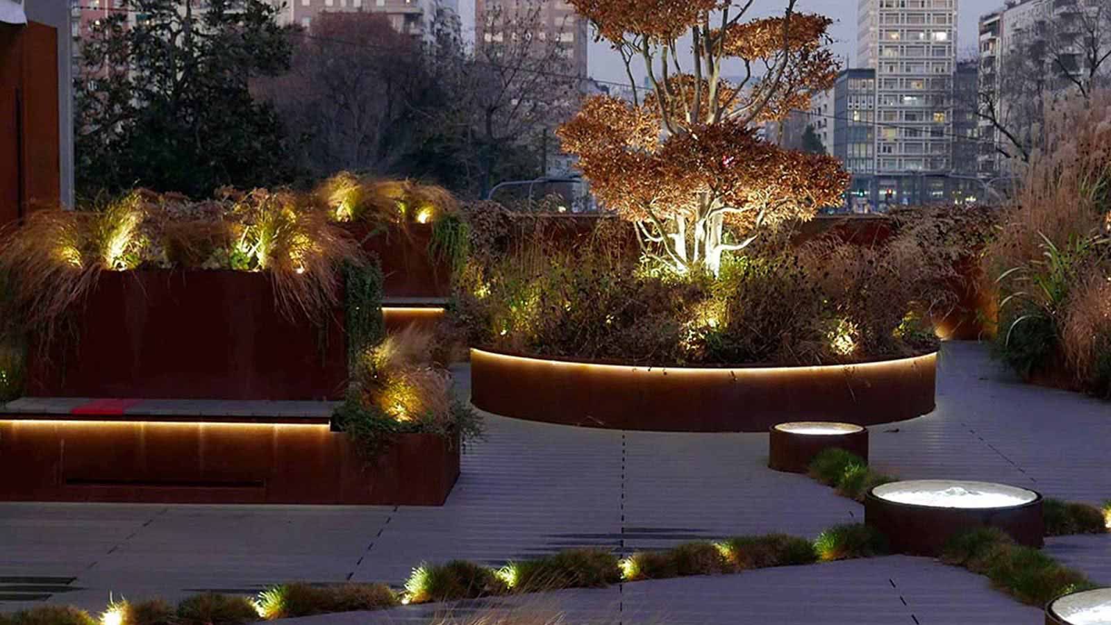 Scopri di piùLa suggestiva illuminazione dei giardini, pensata per il benessere dei residenti del pluripremiato complesso residenziale londinese